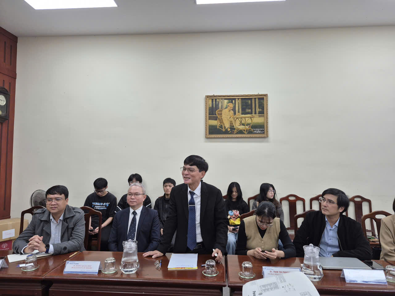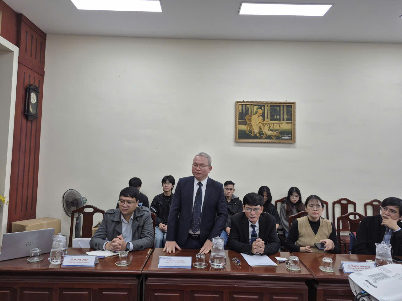 Tham dự buổi làm việc có: TS. Phan Tuấn Anh, Phó Hiệu trưởng; TS. Trần Thị Phương An, Phó Trưởng Phòng KHCN&HTQT, TS. Dương Quang Hiệp, Trưởng Khoa Lịch sử, cùng giảng viên và sinh viên chuyên ngành Nhật Bản học, Đông phương học.