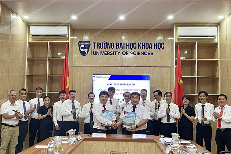Vừa qua, Trường Đại học Khoa học, Đại học Huế (HUSC) và Học viện Công nghệ Bưu chính Viễn thông (PTIT) đã ký thỏa thuận hợp tác trong các lĩnh vực đào tạo, bồi dưỡng, nghiên cứu khoa học và đổi mới sáng tạo để đào tạo nguồn nhân lực chất lượng cao cho xã hội. Tham dự tại lễ ký kết về phía Trường Đại học Khoa học có PGS.TS. Võ Thanh Tùng, Bí thư Đảng ủy, Hiệu trưởng, TS. Bùi Quang Vũ, Phó Bí thư Đảng ủy, Chủ tịch Hội đồng trường; về phía Học viện Công nghệ Bưu chính Viễn thông có GS. TS Từ Minh Phương, Bí thư Đảng ủy, Chủ tịch Hội đồng Học viện, PGS.TS Đặng Hoài Bắc, Giám đốc Học viện cùng đại diện lãnh đạo của hai đơn vị, các Phòng chức năng và các Khoa chuyên môn.