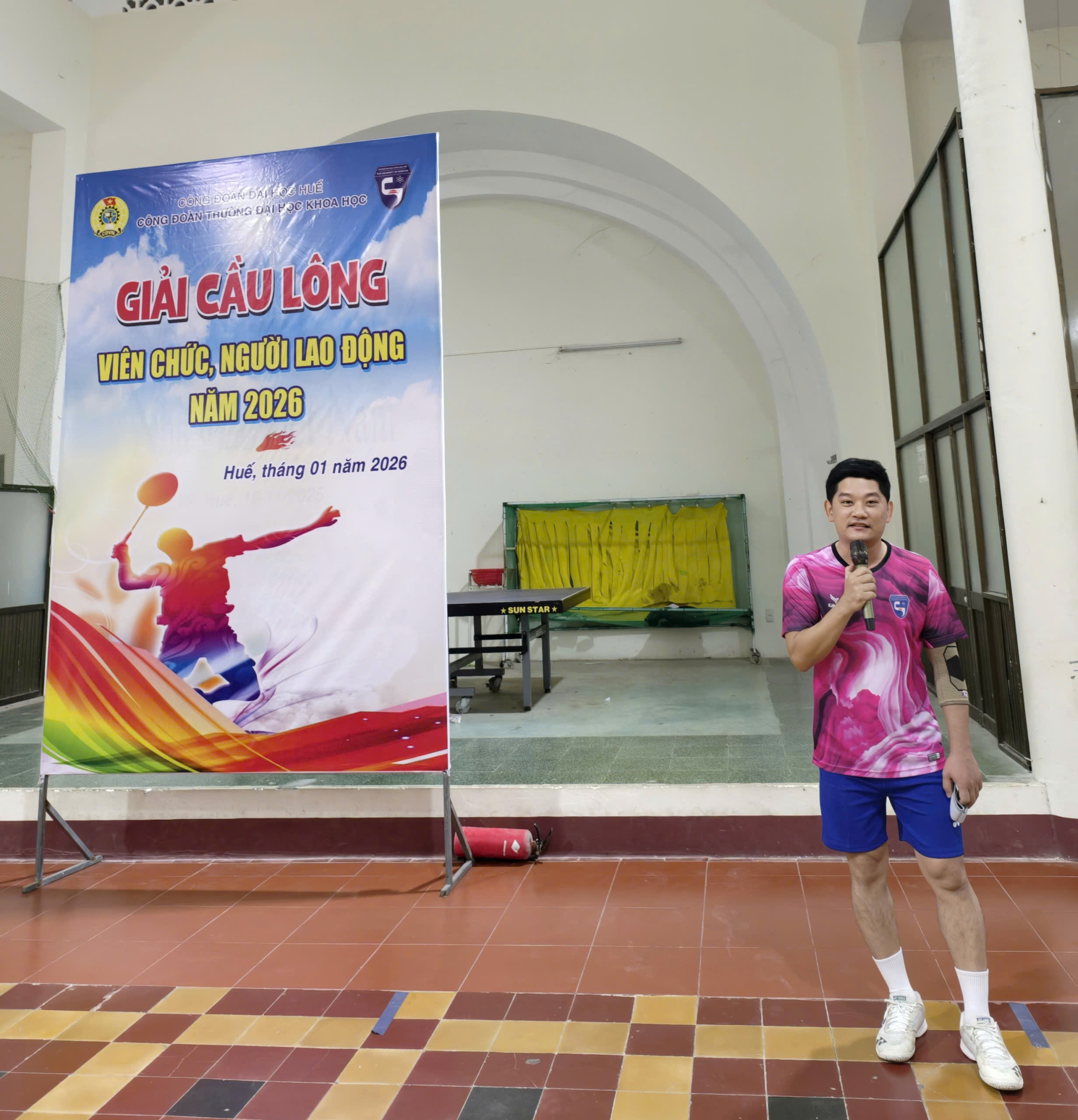 Chiều ngày 27/01/2026 tại Hội trường A2 của Trường Đại học Khoa học đã diễn ra Lễ khai mạc Giải Cầu lông viên chức, người lao động năm 2026 do Công đoàn cơ sở Trường Đại học Khoa học, Đại học Huế tổ chức. Giải đấu được tổ chức trong 02 ngày 27 và 28/01/2026 với sự tham gia của 2 đội cầu lông và các hạn mục cá nhân.