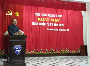 Sáng ngày 23/9, tại Hội trường A1, Ban Chấp hành Quân sự (BCHQS) Trường Đại học Khoa học (ĐHKH), Đại học Huế phối hợp với BCHQS các Trường Đại học Luật, Đại học Huế và Đại học Nghệ thuật, Đại học Huế đã tổ chức lễ khai mạc Huấn luyện quân sự, giáo dục chính trị - pháp luật cho lực lượng tự vệ của các Trường năm 2019.