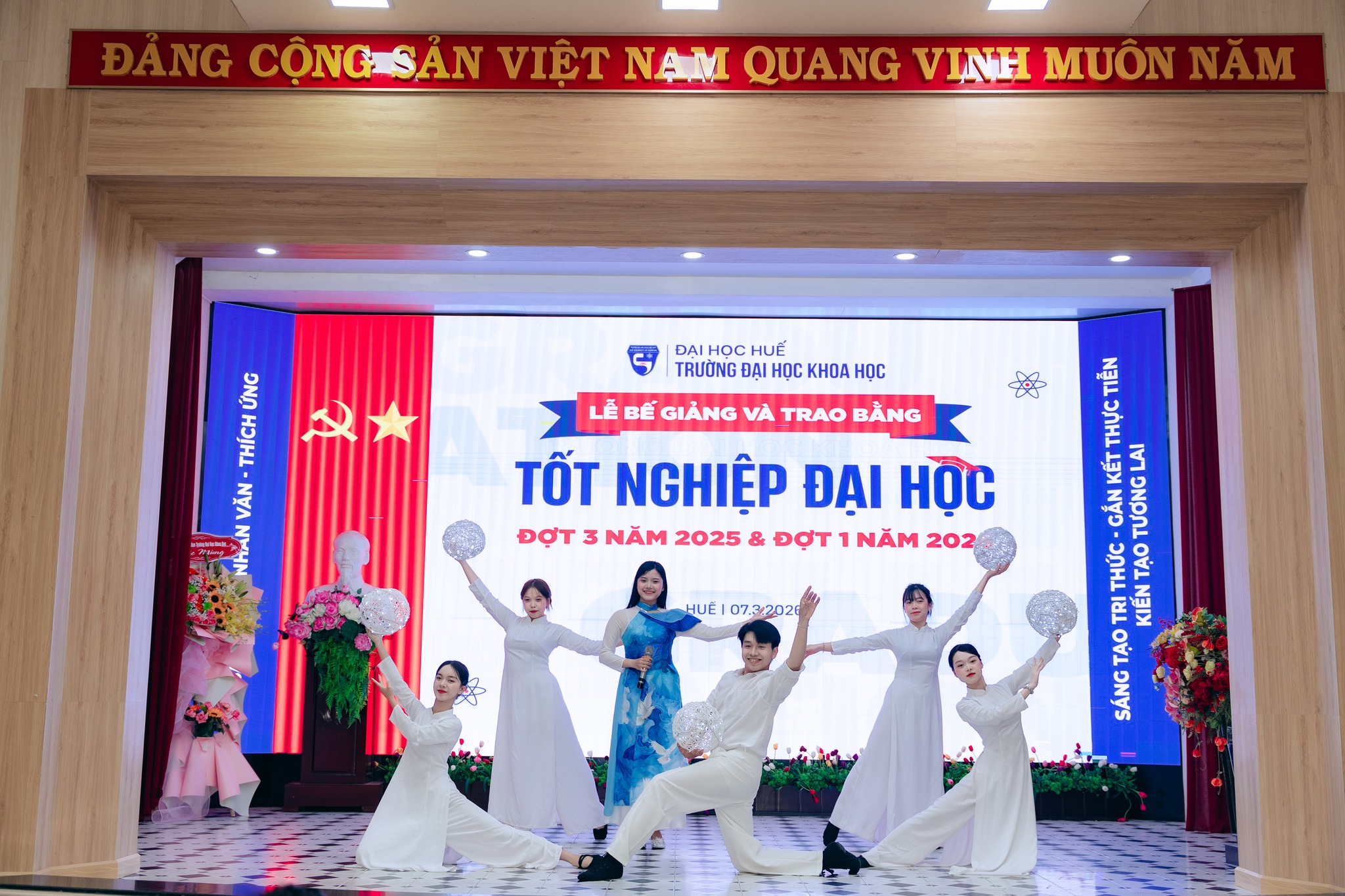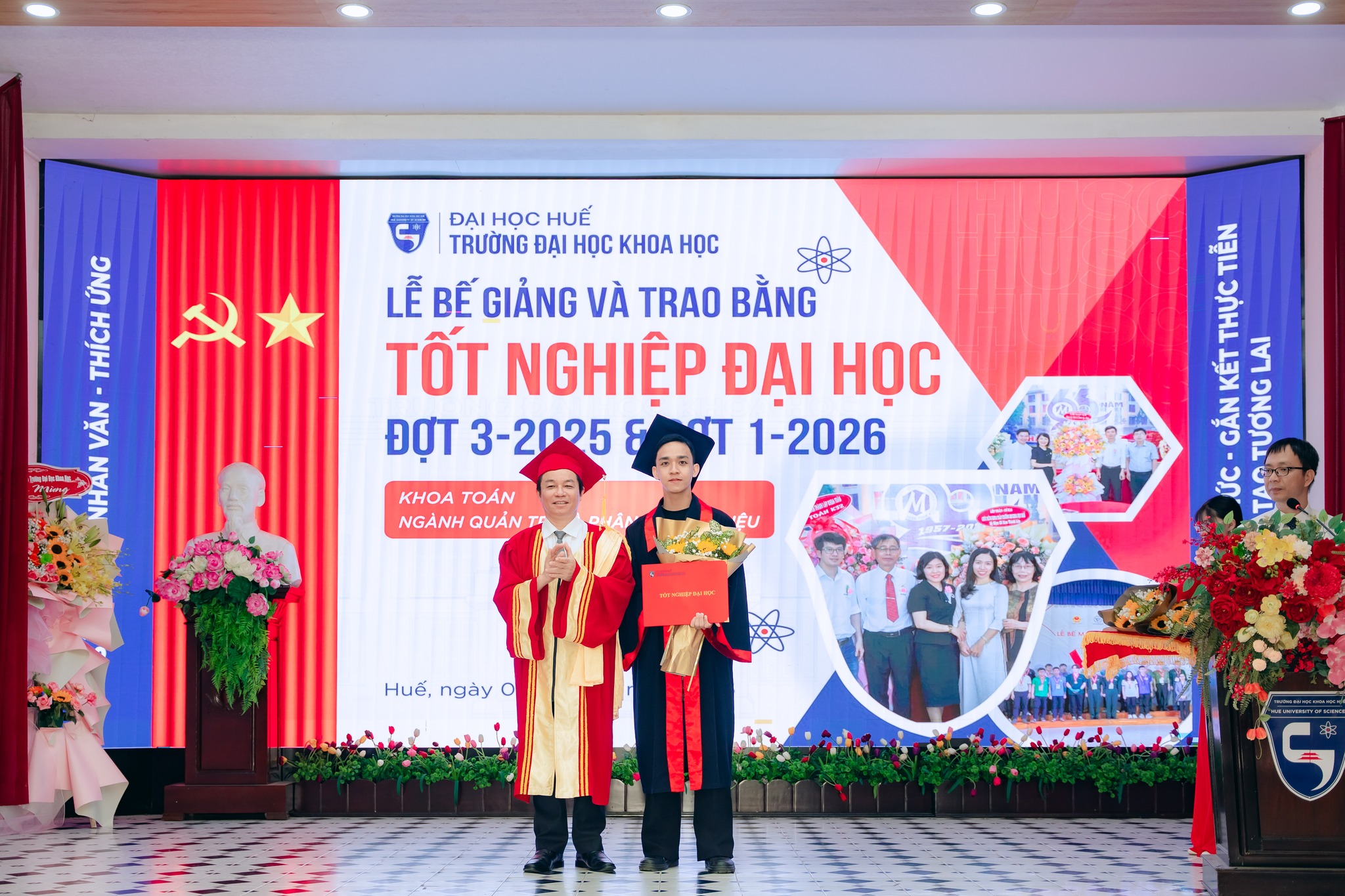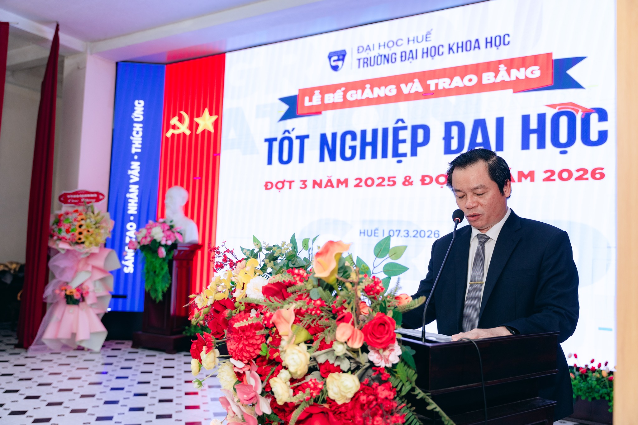 Sáng ngày 07/3/2026, Trường Đại học Khoa học, Đại học Huế đã long trọng tổ chức Lễ Bế giảng và Trao bằng tốt nghiệp đại học hệ chính quy đợt 3 năm 2025 và đợt 1 năm 2026 cho các sinh viên đã hoàn thành chương trình đào tạo.
