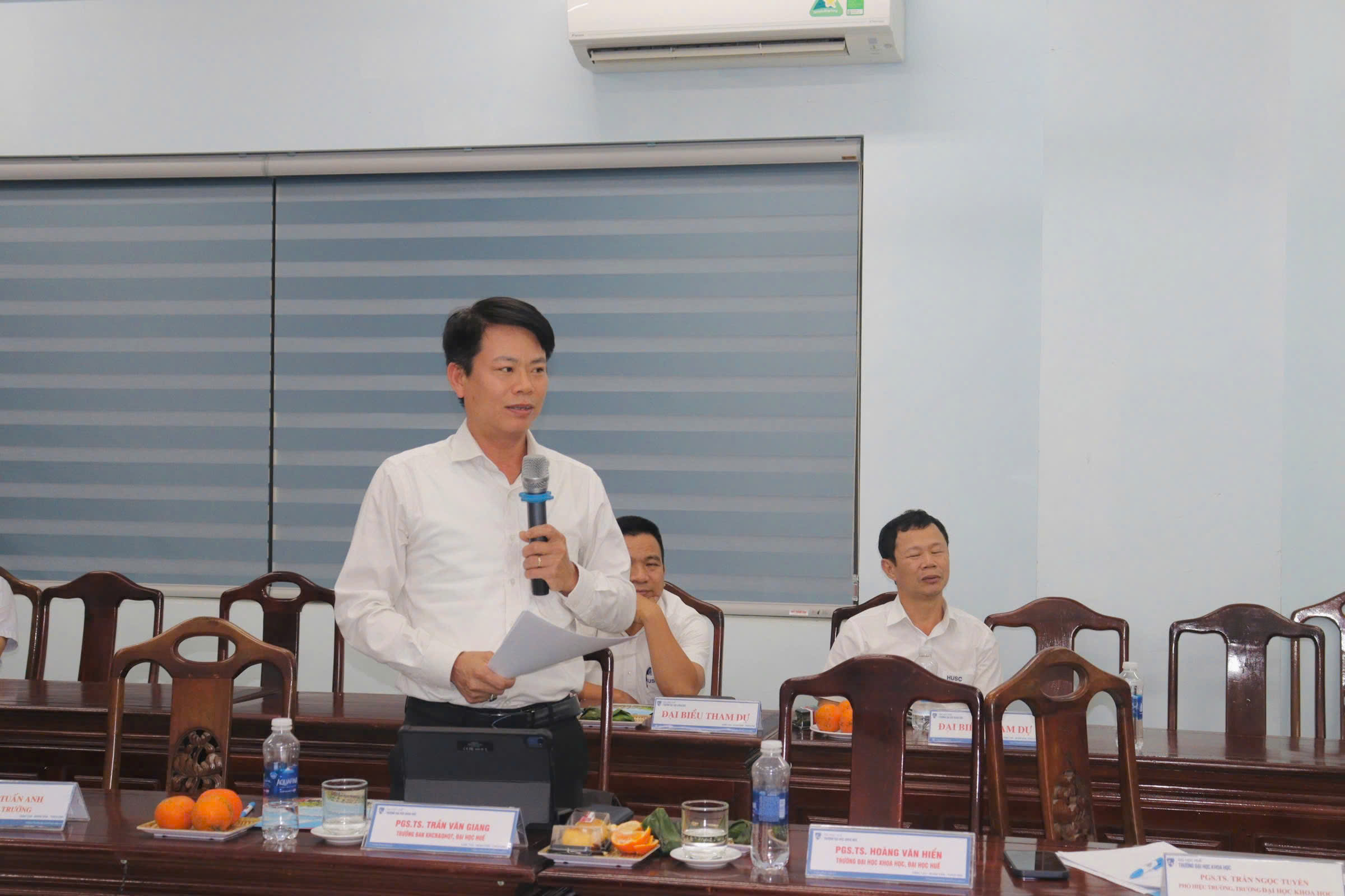 Về phía đại biểu ngoài trường có: PGS.TS. Đỗ Bang, Phó Chủ tịch Hội Khoa học Lịch sử Việt Nam; TS. Trần Đình Hằng, Viện trưởng Phân viện Văn hóa Nghệ thuật Quốc gia Việt Nam tại Huế; TS. Phan Tiến Dũng, Chủ tịch Hội Khoa học Lịch sử thành phố Huế; TS. Trần Văn Dũng, Sở Văn hoá và Thể thao thành phố Huế; Ông Nguyễn Quang Chức, nguyên Giám đốc Trung tâm Quản lý Di tích và Bảo tàng tỉnh Quảng Trị (cũ); PGS.TS. Trần Văn Giang, Trưởng Ban Khoa học Công nghệ và Quan hệ quốc tế, Đại học Huế. Về phía Nhà trường có: TS. Bùi Quang Vũ, Bí thư Đảng ủy; PGS.TS. Trần Ngọc Tuyền, Phó Hiệu trưởng; TS. Phan Tuấn Anh, Phó Hiệu trưởng, PGS.TS. Huỳnh Thị Ánh Phương, Trưởng Phòng Khoa học Công nghệ, Hợp tác quốc tế và Thư viện cùng các đơn vị thuộc Trường Đại học Khoa học (các phòng Tổ chức và Hành chính, Kế hoạch Tài chính và Cơ sở Vật chất; các khoa Lịch sử, Kiến trúc, Công nghệ thông tin, Địa lý và Địa chất, Báo chí - Truyền thông, Ngữ Văn, Xã hội học và Công tác Xã hội); PGS.TS.Hoàng Văn Hiển, Chủ nhiệm Nhiệm vụ, Ban Chủ nhiệm và thành viên tham gia Nhiệm vụ hợp tác giữa hai trường cùng một số đại biểu khác.
